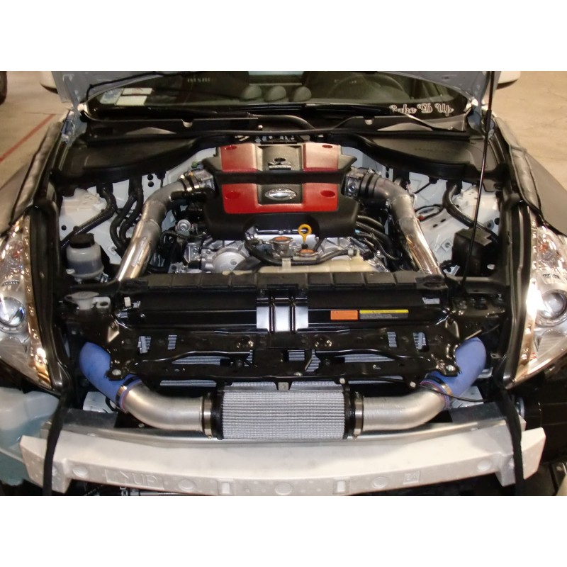 This Takeda performance air intake system uses a unique dual flange filter design engineered to maximize surface area and flow. In recent testing this Takeda "Attack" cold air intake produced +15 horsepower and +16 lbs. x ft. torque, while outflowing the factory intake by +35%. The placement of the unique single air filter specifically designed to fit flawlessly in the area in front of the radiator guarantees a supply of cool, high pressure fresh air for maximum power gains. The Takeda philosophy of "no cutting or drilling" is maintained with this intake system, as flexible high resistance silicone couplings are used to pass through existing openings in the radiator core support. Whether for street or race, this is the ultimate intake system for the 370Z.