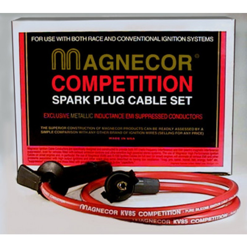 Magnecor KV85 8.5mm High Performance Ignition Leads are primarily designed for race engines using performance ignition systems and are also ideal for engines that are turbo or supercharged. The entire jacket is made from aerospace extreme heat-resistant silicone rubber and the exclusive Magnecor 2.5mm Metallic Inductance Suppressed Conductor will suppress EMI indefinitely, allowing these ignition leads to be used on road vehicles with any type of ignition system. Can be fitted into most original lead holders.