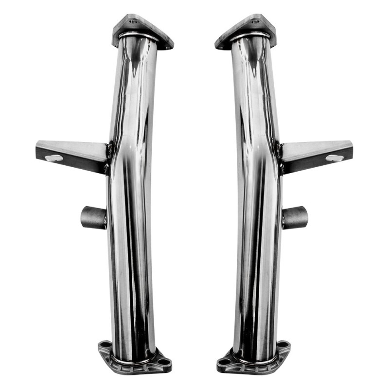 These are constructed from 304 Stainless Steel and are sure to not rust. These include O2 sensor ports. They also include nice, large flanges to ensure a proper fit as well as 2 gaskets to make sure that exhaust gas stays where it's supposed to, inside the nonrestrictive exhaust.