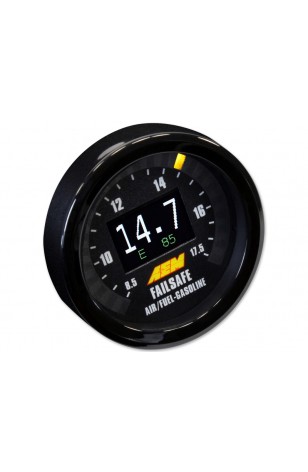 downloaded and viewed in AEMdata analysis software. The gauge includes a low side output for triggering a failsafe strategy in the event AFR falls outside of the operating window, and an RPM input to log RPM for tuning purposes.