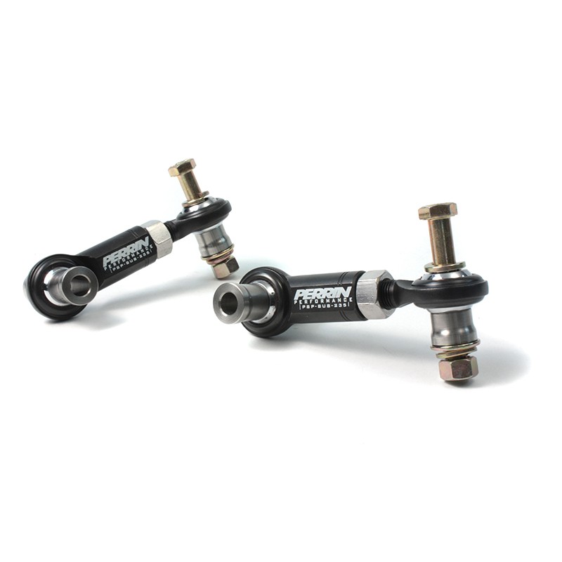 PERRIN Sway bar endlinks are made from high strength adjustable male and female rod ends and stainless steel bushings. This allows you to adjust the length of their endlinks to meet the needs of your driving style. These Spherical bearing type endlinks are the same kinds of parts you would find on a no compromise race car suspension.