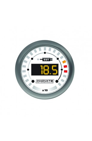 This 2 1/16” (52mm) gauge features a water resistant casing, interchangeable faceplates and bezels, locking connectors for simplified installation, and MTS serial connections used to connect with other Innovate devices for logging.