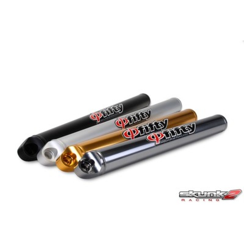 Phi Fifty Rear Lower Arm Bars are manufactured from ultra-strong and lightweight 6061 aluminum and yield the highest strength-to-weight ratio available. Each bar is hard anodized in four available finishes for maximum durability and features its own Skunk2 Phi Fifty nameplate. Phi Fifty Rear Lower Arm Bars also include the appropriate precision-machined mounting brackets and hardware for a trouble-free installation and for optimal clearance with all OEM anti-sway bars.