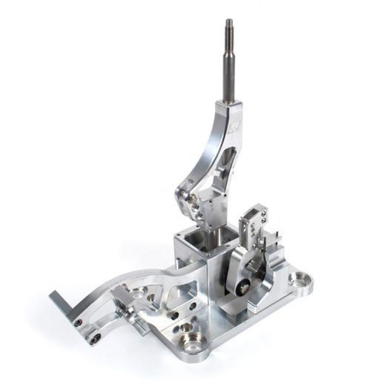 The K-Tuned Pro Billet RSX Shifter is a direct replacement for the OEM 2002-2006 RSX-S shifter box and was been designed to work with both factory and aftermarket shifter cables. The full billet design is extremely strong and eliminates all the flex and looseness that are felt with the stock plastic box. The shift lever and pivot ball are made from solid stainless steel and are seated in a spring loaded brass socket. This combination of stainless and brass allows the two materials to lap together while the springs push up and eliminate "play" at the ball. For mounting, there are two different sets of holes on the base, so it can be easily bolted into several stock and K-swap applications. The Race-Spec Billet RSX Shifter was designed for professional hard-core racers and we are pleased to offer them a shifter that is truly "Race Proven".