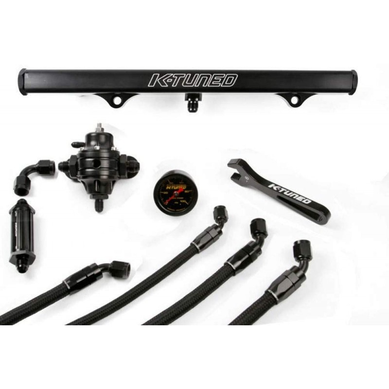 This complete kit is designed to work with an Inline fuel filter and our K-Tuned center feed fuel rail. This is a complete K-swap fuel system, which includes pre-assembled fuel lines, Inline fuel filter, K-Tuned fuel rail, K-Tuned FPR with gauge,K-Tuned 6AN wrench and clamps. Buy everything together and save a few dollars.