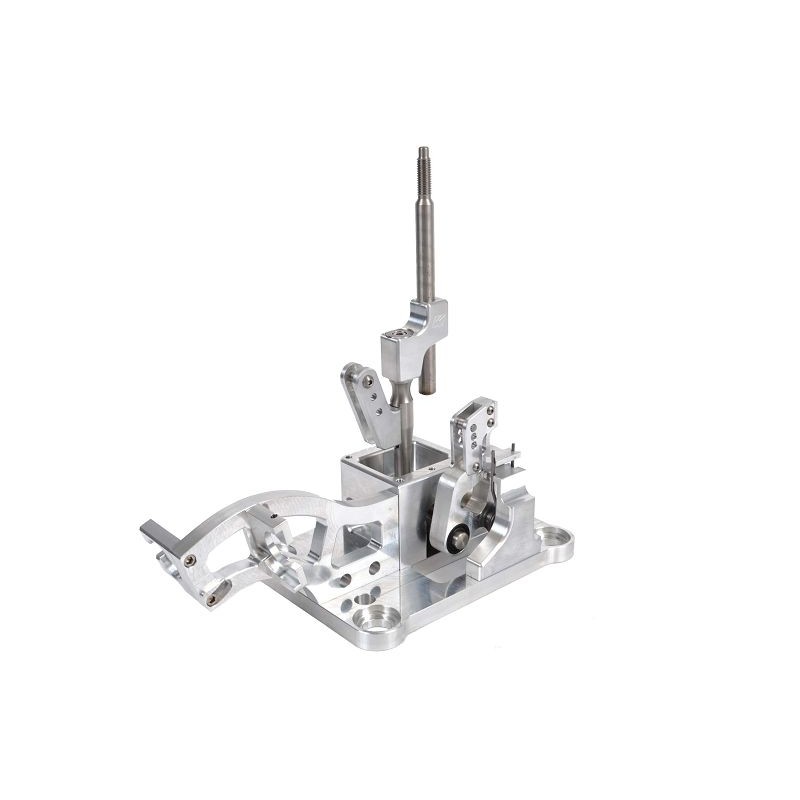 Our Billet Shifter Arm is integrated and has been redesigned to make fine adjustments to the spread of the H shift pattern. Essentially this feature allows the user to widen the spacing between 1st, 3rd and 5th gear. Note that 2nd, 4th, 6th and reverse gears will also be spread apart when adjusted. We have also developed a proper short shifter option that won't damage or break the cable guides. This is accomplished by making the shifter cable mounting point adjustable to correct the angle at the cable connection. The shift lever and shifter ball are made from solid stainless steel and seated in a spring loaded brass socket. This combination of stainless and brass allows the two materials to lap together while the springs push up and eliminate ñplayî at the ball. The lever is fully adjustable in height and offset rotation. Height can be adjusted up to 2î taller or shorter than stock and there is an amazing 90 different offset positions.