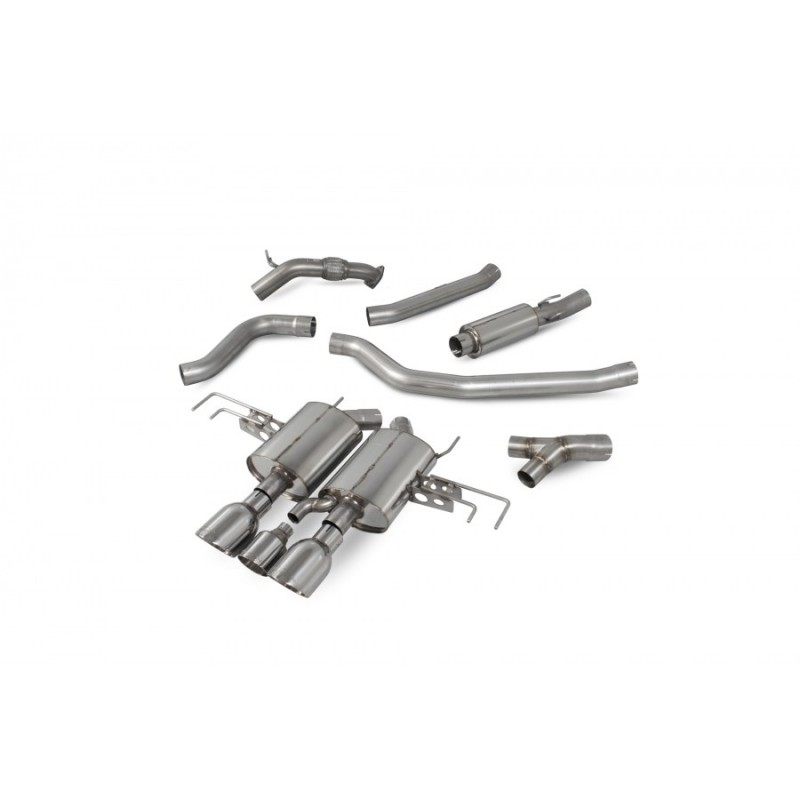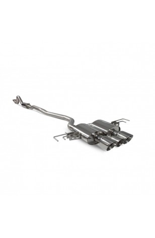 The cat-back system constructed from 3" / 76mm T304 stainless steel pipework. The system can be selected with a resonated or part resonated front section to suit all driving styles. Acoustically constructed rear silencers help eliminate drone as well as provide a sportier exhaust note. The three piece tailpipe set-up consists of 2 larger tailpipes with a smaller tailpipe in the centre that features a distinctive Red Power outlet ring. Daytona and Indy style are available.