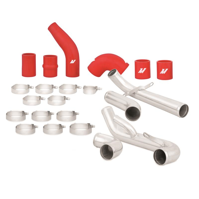 Upgrade your restrictive and failure-prone factory Evo intercooler pipes with the Mishimoto Lancer Evolution X Intercooler Pipe Kit, precision engineered for the Mitsubishi Evolution X. This kit features polished 2.5" mandrel-bent aluminium piping for smooth airflow, and four-layer silicone couplers with heat-resistant embedded fibres for improved tolerance against heat and pressure.
