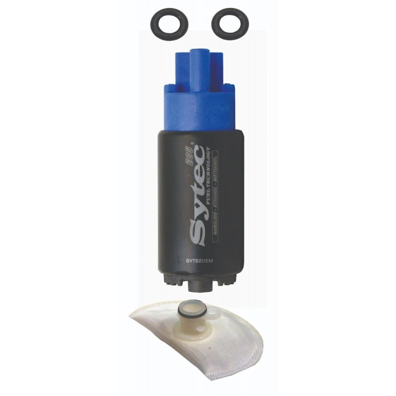 The new Sytec range of 340 Ltr/Hr High Performance fuel pump have been designed and tested with performance & reliability as a priority. Pumps with a part numbers ending in ‘G’ are for vehicles using standard forecourt petrol with up to 15% ethanol content. Part numbers ending with ‘EM’ are compatible with all petrol types up to and including E85 (85% Ethanol) Fittings In (mm):- 11 Fittings Out (mm):- 8 Pump:- Sytec SYT620EM Voltage DC:- 12 Fuel:- Petrol (E85 Compatible) Flow Ltr/Hr (Max):- 390 Flow Ltr/Hr @ 3 Bar (44psi):- 339 Flow Ltr/Hr @ 5 Bar (73psi):- 240 Max Pressure:- 10.5 Bar One Way Valve:- Yes Length (mm):- 113 Diameter (mm):- 38 Weight (Kg):- 0.287